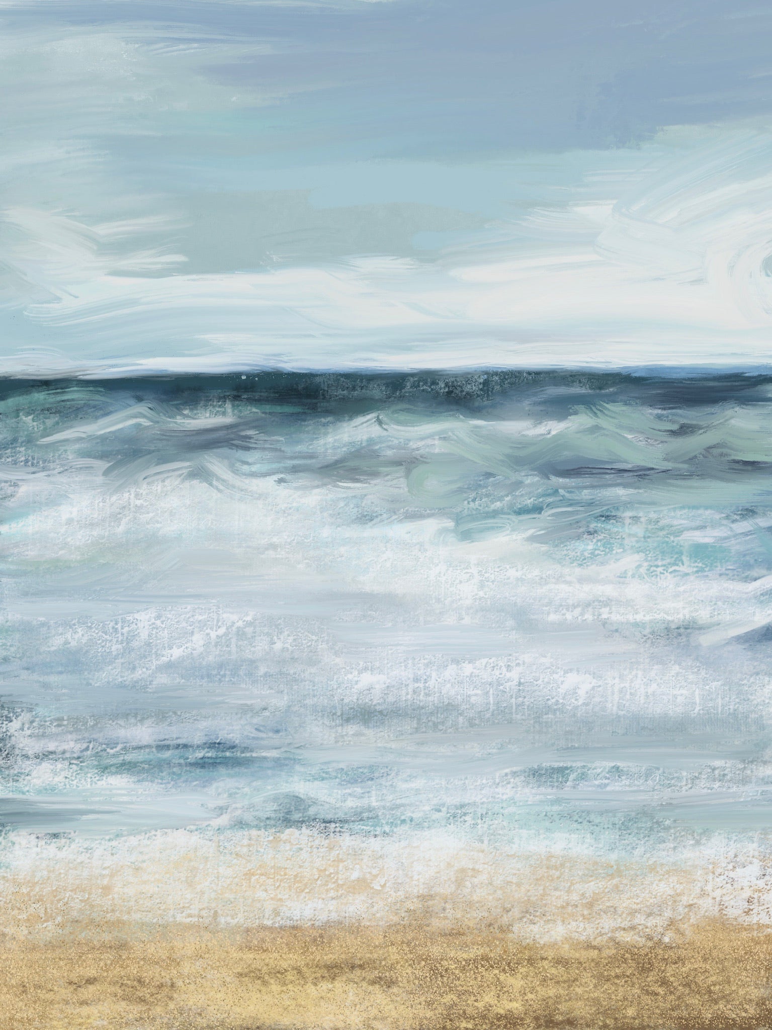 You can almost smell the salt and feel the breeze in this slightly abstract coastal print. It's restful blues, soft whites and warm sand hues are a perfect combination for any room.