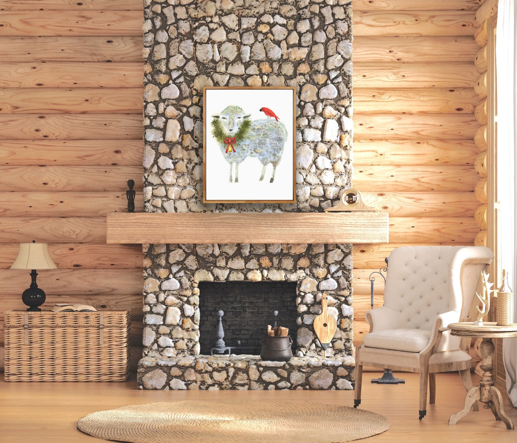 This charming Christmas card features a gentle sheep adorned with a festive wreath and peaceful gaze. Perched on its back, a red bird sings reminding us that together is where we want to be in this festive season.