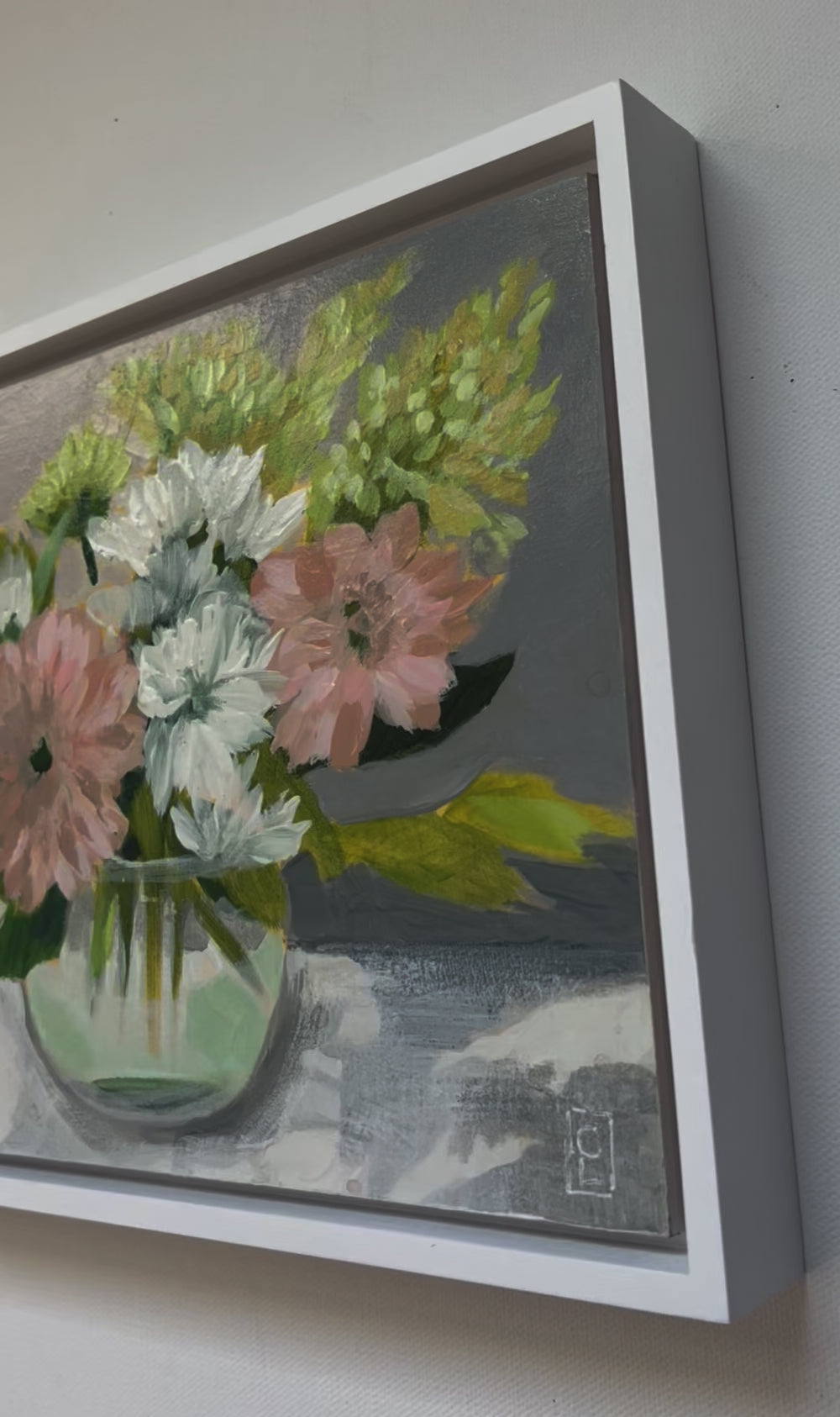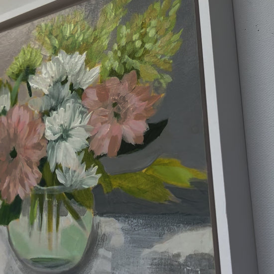 I have a friend who always puts flowers out when she knows guests are coming. It's such a statement of her care, friendship and love of creating a welcoming ambiance. This painting reminds me of her and all those who go a little extra mile in their gracious hosting.