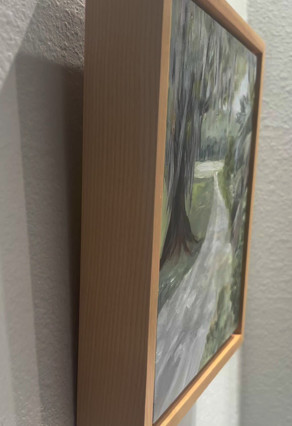 Shady Lane is an original acrylic painting on wood, fully framed and ready to hang.