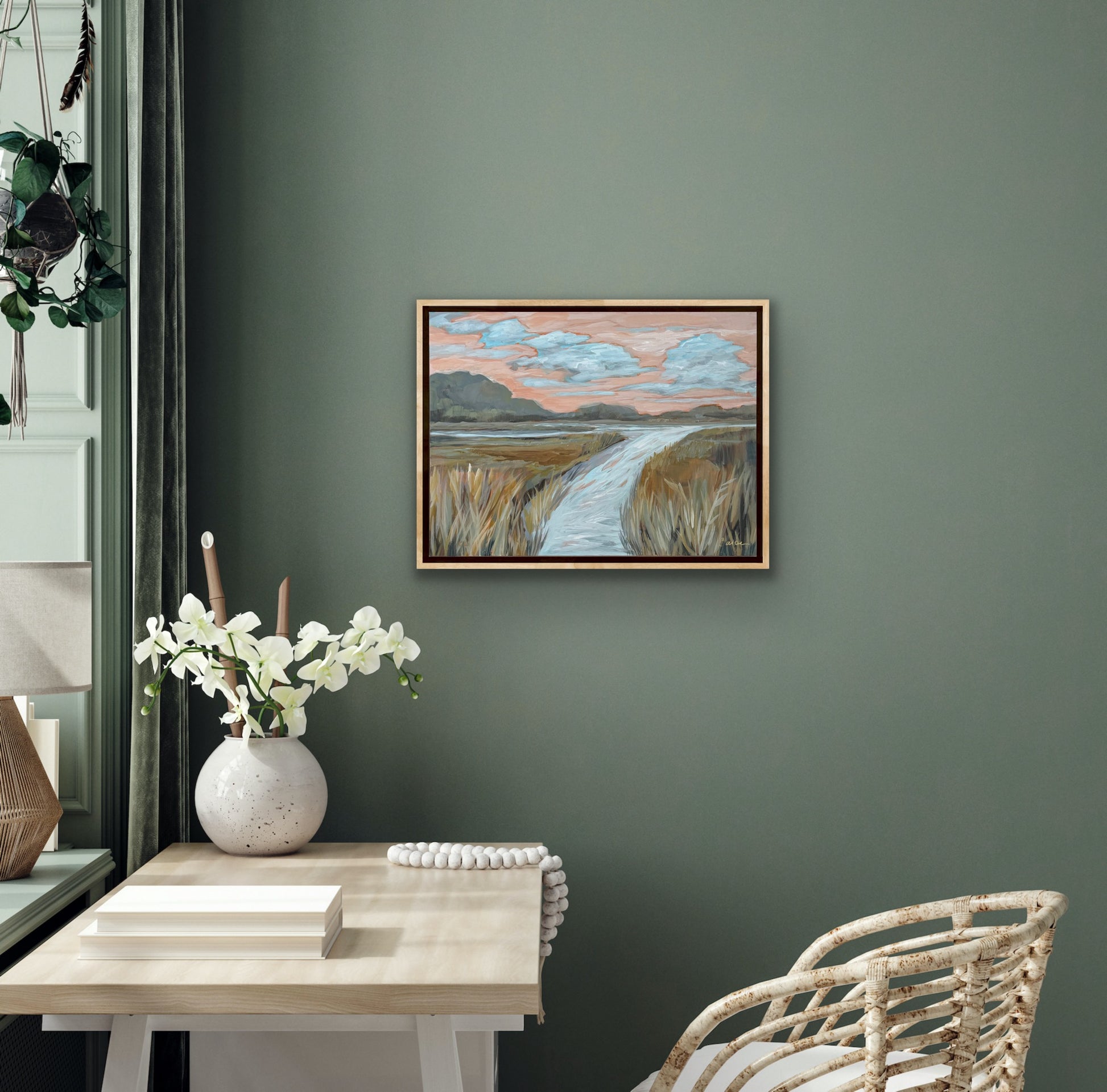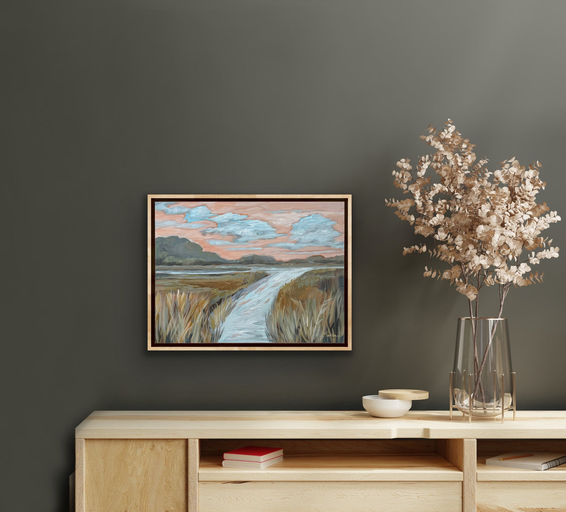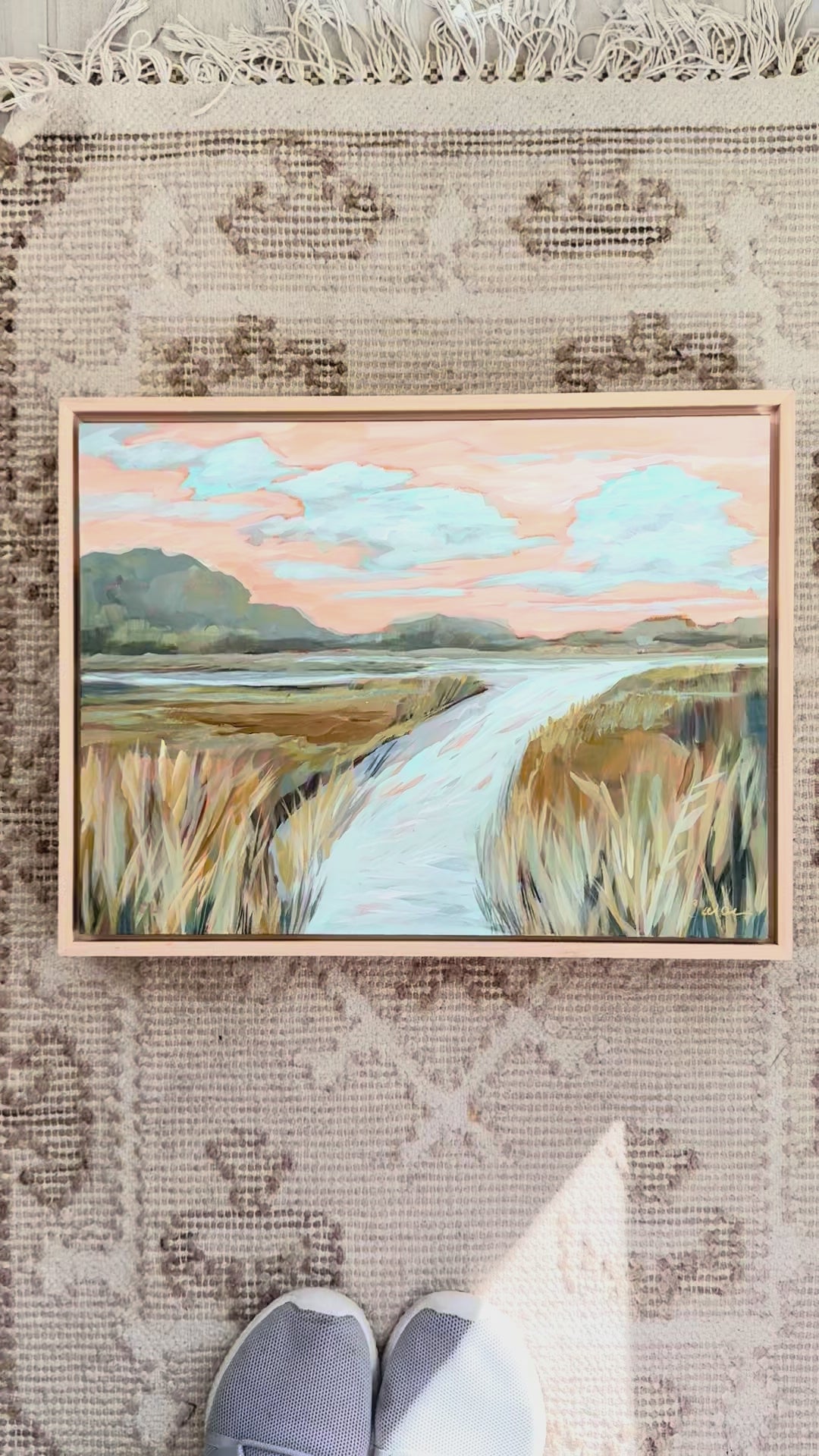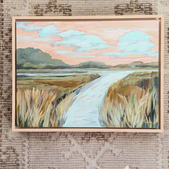 Framed size: 17" x 13" x 1 1/2" in natural, solid wood floater frame